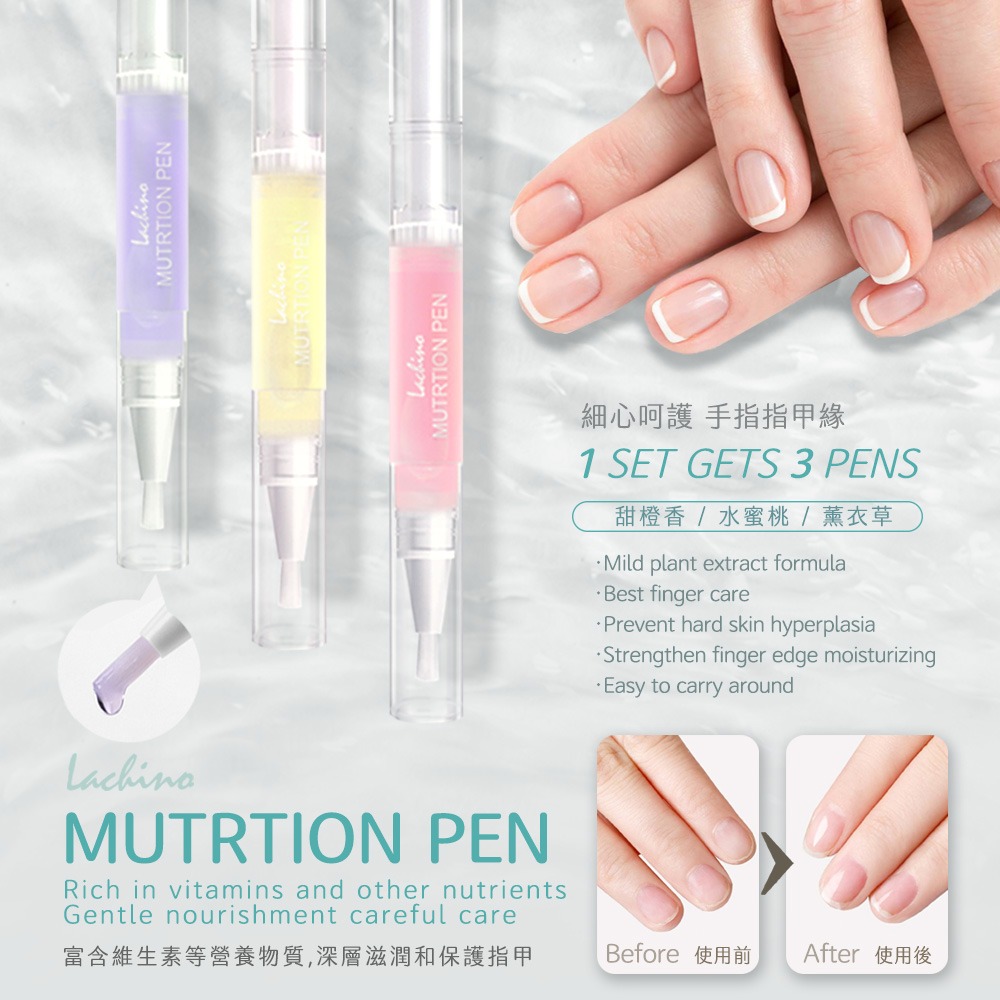 ⏰截單 : 6/10 23:00 🔜預計到貨:約12月底 ⛔空運/海運可能因各種不明因素影響而延誤到港,如不能接受者請勿下單🙇🏻♀ 📌溫馨提示: 圖片由供應商提供只供參考實品,一切以實物為準 ❤️台灣生醫製造 指緣滋養筆*3支組 現代人很注重指甲的保養 美甲更非常盛行 沒空出去做指甲 也要把手指頭保養的美美的喔 ✨✨呵護玉手人人有責✨✨ 指緣肌膚每個細節都不放過‼️ 想擁有美麗的玉手😎😎指緣的保養也是相當重要呢 選定台灣製造,用得更安心 指緣如同我們臉蛋的皮膚,一樣是會流失水分的💦 這樣的水分流失⚠️是會導致指甲周圍皮膚變乾變硬⚠️還會出現倒刺哦😭 尤其是經常做美甲的水水們 塗完指甲油後,指甲油沾在邊緣皮膚上 更是會吸收周圍甲緣皮膚的水分呢💦 別擔心🔰讓指緣滋養筆來提供你需要的養護🔰 內含多種滋養成分,幫助肌膚修復乾裂、倒刺、破損的問題 ✅溫和植萃配方 ✅簡約筆型設計 ✅最佳指緣護理 ✅防止硬皮增生 ✅加強指緣保濕 ✅隨身攜帶方便 ❤️指緣專用精華液❤️ 📌產地:台灣 📌容量:5ml 📌使用方法: ❶順時鐘轉動筆刷尾部 ❷將滋養液塗抹在指甲邊緣 ❸用手指輕輕按摩 📌款式:甜橙香/水蜜桃/薰衣草 (+1=3個味道一組)