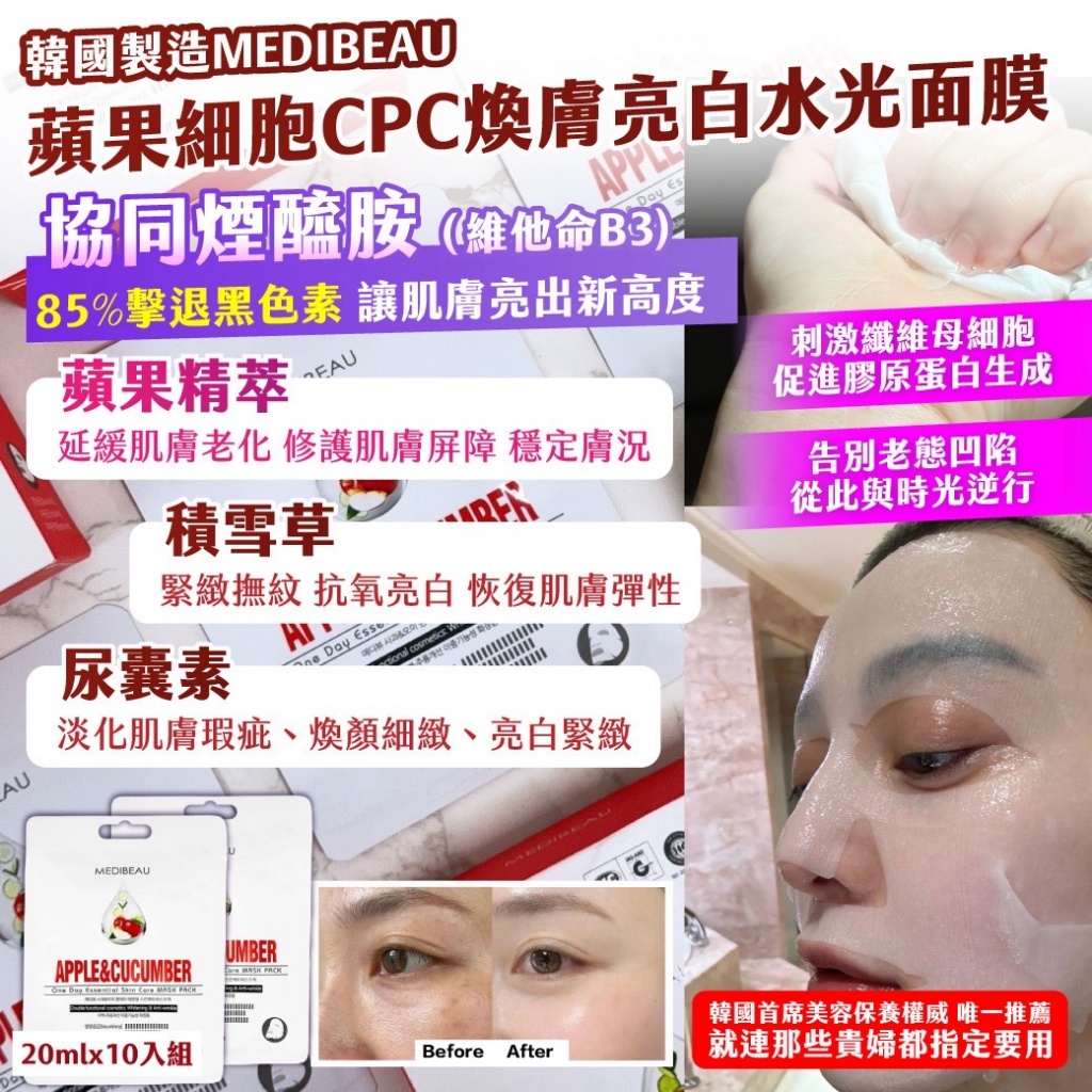 YW251877 - 韓國製造 MEDIBEAU 蘋果細胞CPC煥膚亮白水光面膜 20mlx10入組