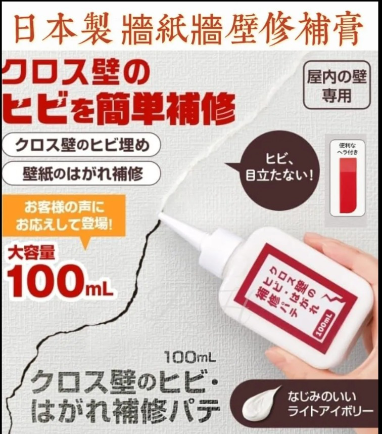 它用於快速修復牆壁或牆紙的裂縫在裂開的地方直接注入修補膏,一擠一刮輕鬆簡單完成補牆工作