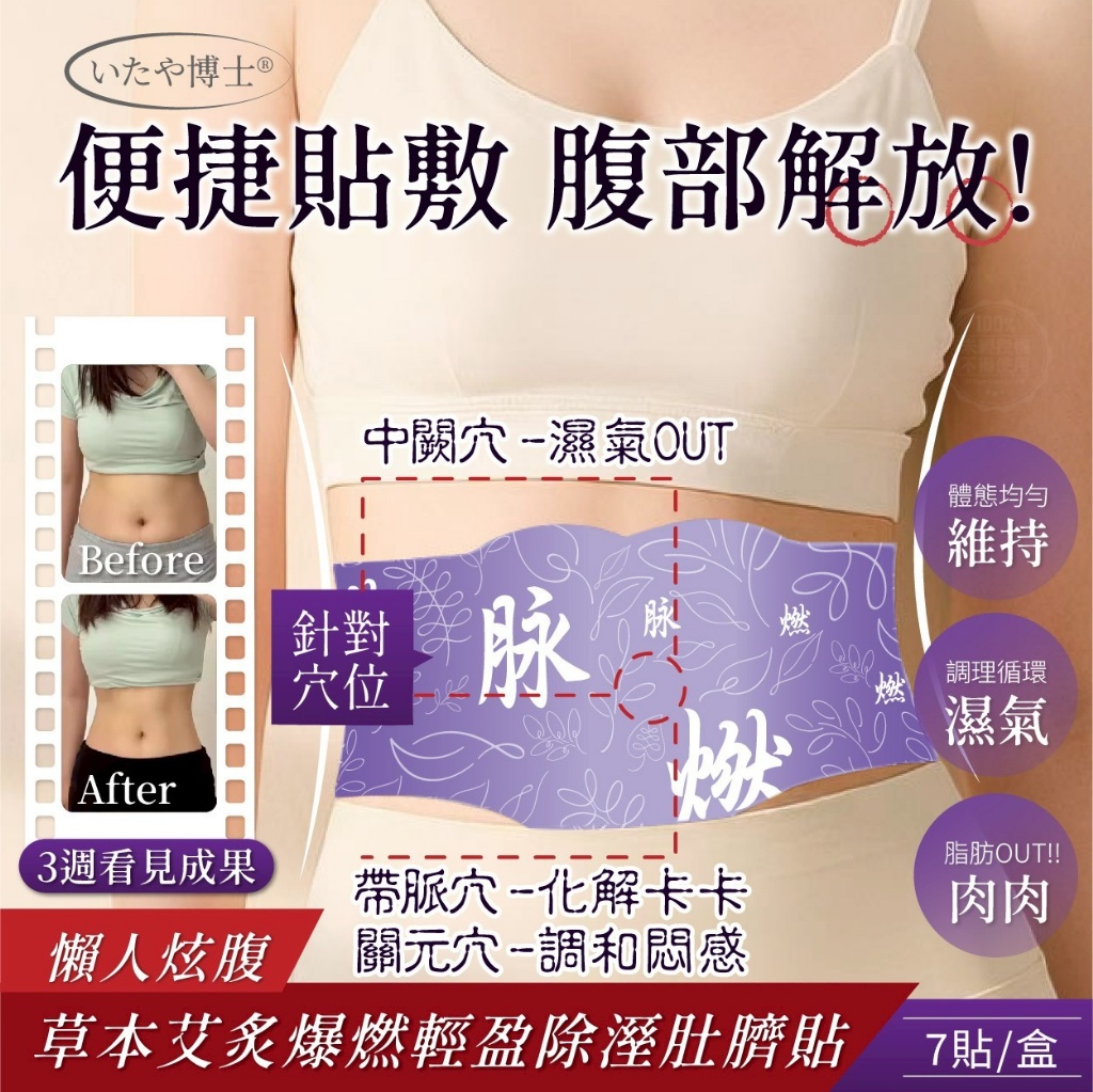 いたや博士® 懶人炫腹 草本艾炙爆燃輕盈除溼肚臍 貼 (7貼/盒)