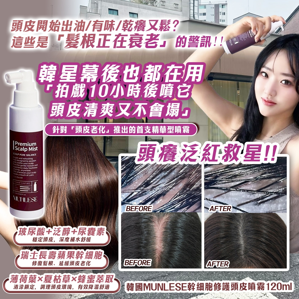 韓國製造🇰🇷|MUNLESE 修護頭皮噴霧|頭皮逆齡從髮根開始|120ml