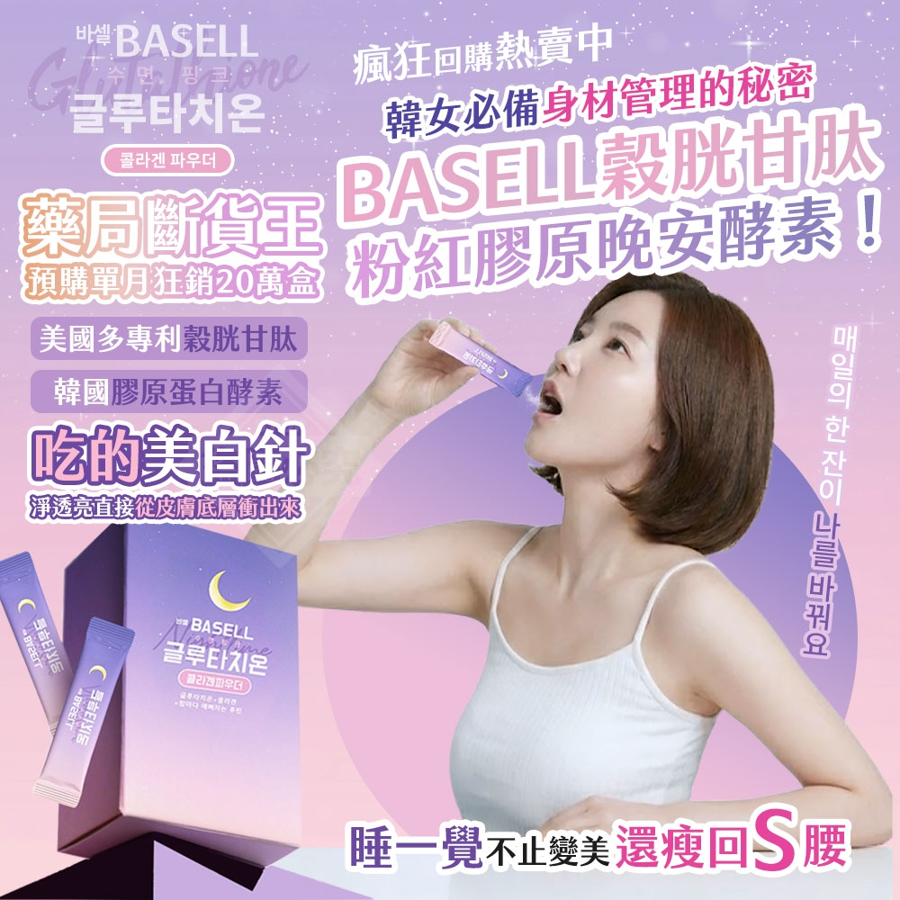 韓國製造💗爆紅!BASELL穀胱甘肽粉紅膠原晚安酵素3g x 30包